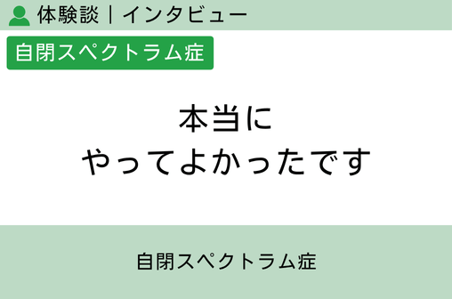 自閉スペクトラム症のお子さんのご家族に、患者さんの声をいただきました。 「毎日意欲的に学校に通うようになった。…