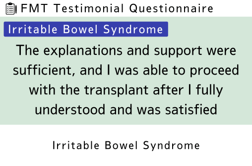 Patients with small intestinal bacterial overgrowth completed a questionnaire. [Profile] Disease Name: SIBO (Small Intestinal Bacterial Overgrowth)Transplant Period: May 15, 2025 – July 2, 2025Number of Transplants: 6-transplant courseTransplant Facility:Shirotani Bio Wellness Clinic Internal Medicine & Orthodontics Kobe Sannomiya(Formerly: LOOKS Ashiya Clinic) [Questionnaire] Q1. How much did you know about…