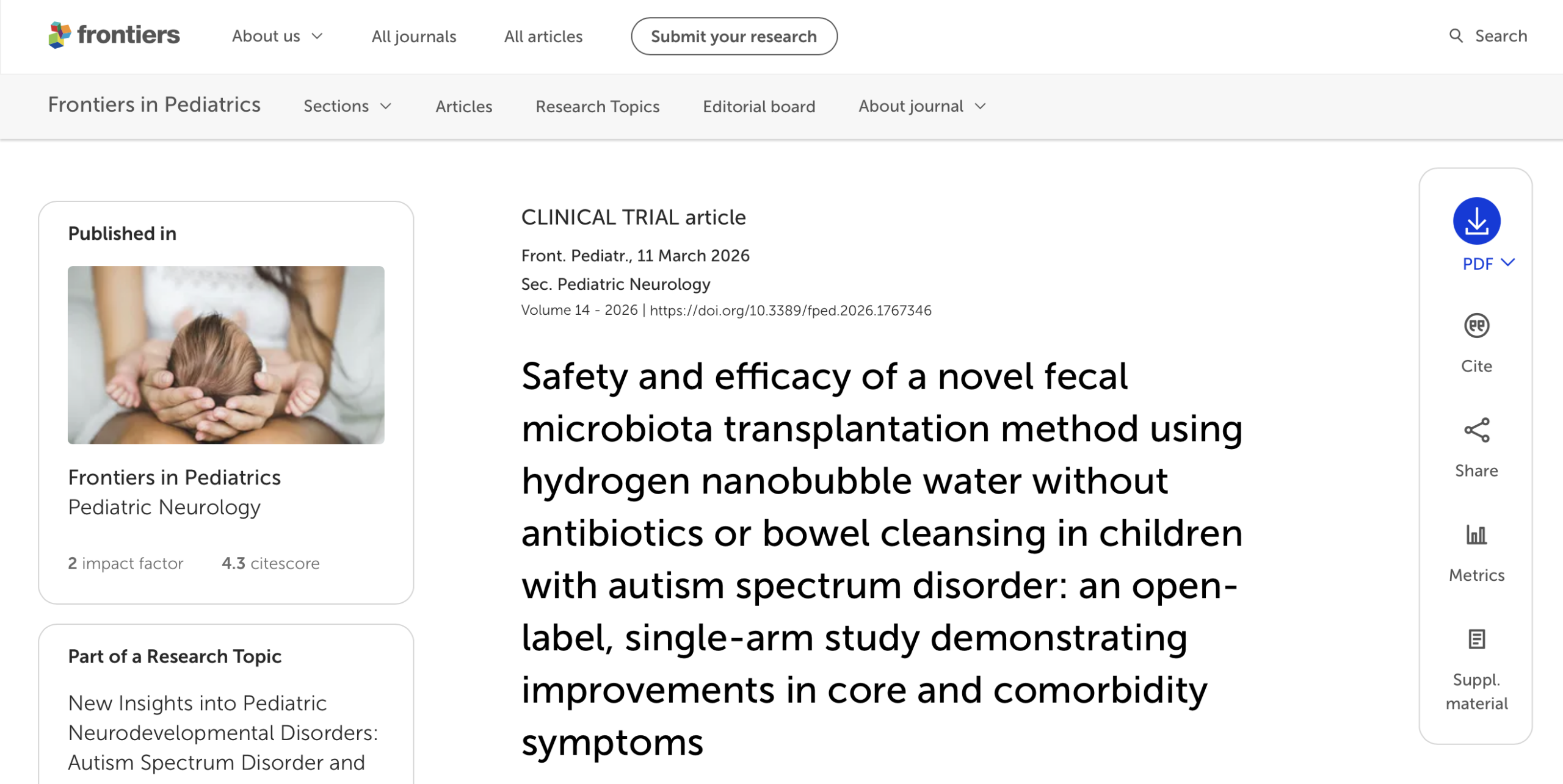 What is the relationship between autism and gut bacteria? An easy-to-understand explanation of the latest research paper (Frontiers in Pediatrics)